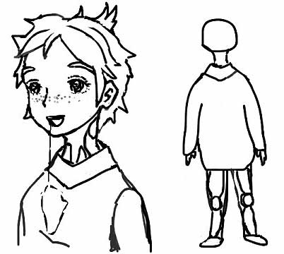| イマジノス・ルウ(19) 教授による完成予想図、寝癖がチャームポイント。 何故か「プリン、プリ〜ン♪」と歌っている時は機嫌が良く、 何故か「トロくさくないもんっ」と言い出すと暴れる前兆。 |