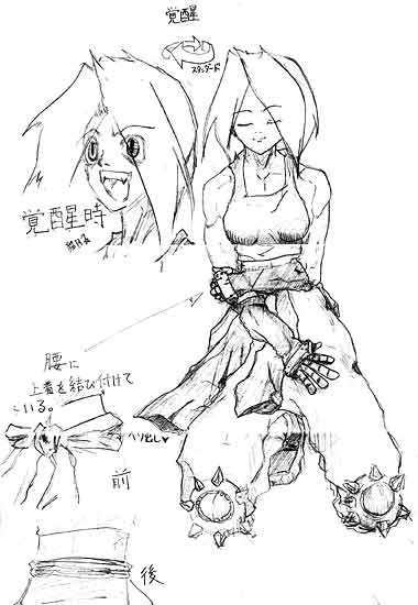 | キャラ名:愛崇(アイスウ) データ:目は覚醒時以外は開きません。(※心眼で見る!!?) 髪の色は白・目の色は青・性格はおっとりですが、 覚醒時は鬼気へ!戦闘は打撃or当身から関節技へ、リズムにノッて 繰り出します♪好きな動物は猫。 口ぐせ:語尾に「にゃ〜」を付ける。 覚醒後の特徴:パワー&スピードが格段にアップし口数も増える。 覚醒は身体の最大能力を無理に上げている為、 そんなに長くは維持できない。 |