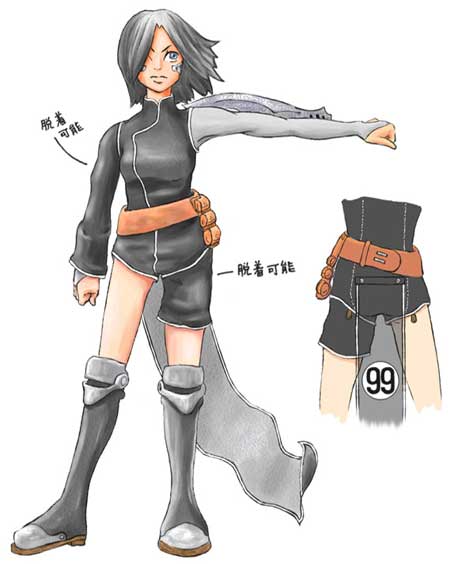 袖と裾は脱着可能です。後ろの帯(?)は戦闘中に
