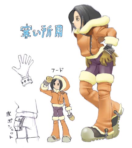 | 大きなボア付きのフードがポインツです。 かぶるとシルエットが頭でっかちになります。 腰が冷えそうですが、機械ボディだからきっと大丈夫です。 |